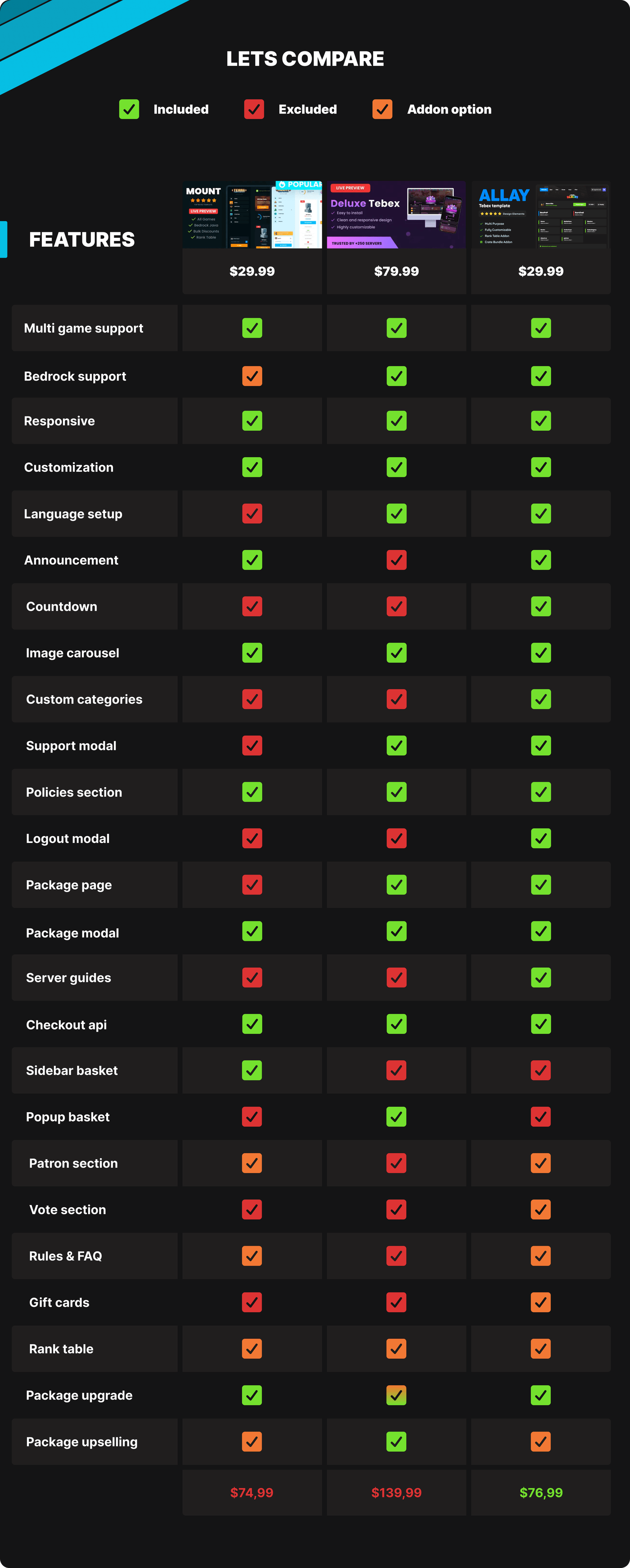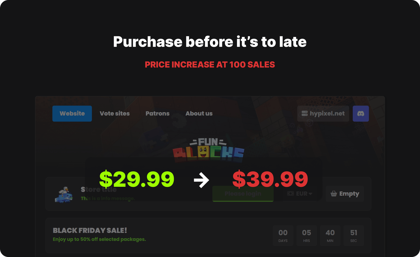 Modern, modest & easy editable Tebex Theme for Minecraft, Rust, FiveM, Unturned, ARK webstores.