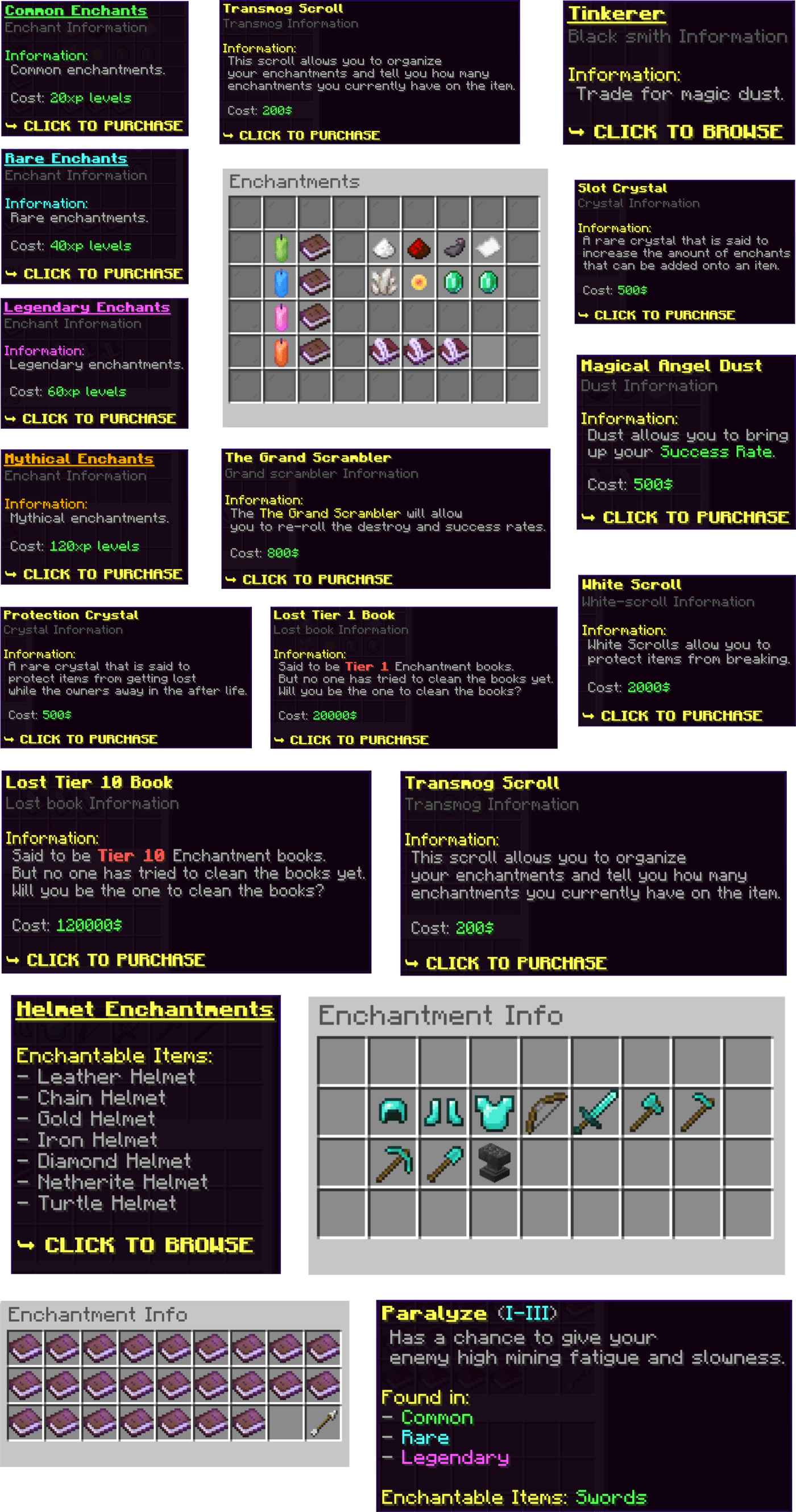 A custom configuration for CrazyEnchants that makes the custom enchantments intuitive to use, and changes all the items and menus lore.